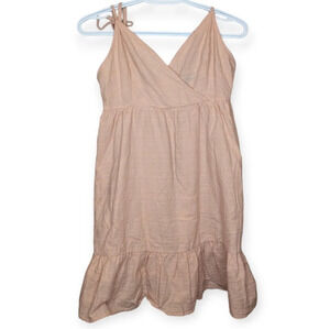 SBetro Y2K Boho Baby Doll Pink Tie Strap V Neck Shirt Dress Women Medium