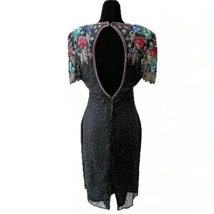 SCALA Sequin Beaded Cocktail Evening Dress Black Multi Colour Open Back Medium