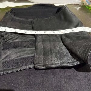 SCARF/NECK WARMER, LEATHER WITH SOFT FLEECE INSIDE, VELCRO CLOSURES, WIND WILL NOT GO THROUGH THIS, SIZE XL, TAGS ON, NEVER WORN