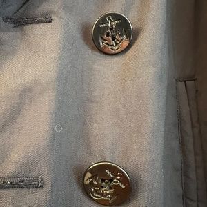 This vintage peacoat from SCHOTT Bros NYC is a must-have for any winter wardrobe. The navy blue coat, made from durable nylon, features a removable collar and is lined with polyester to keep you warm on even the coldest of days. The coat is designed for men in size XL and has a classic pea coat style that never goes out of fashion. SCHOTT is known for its quality and durability, so you can be sure that this coat will last you for years to come. Don't miss out on adding this timeless piece to your collection. Only flaws are slight fading from wear, one missing button (easily replaced) and the logo patch needs to be re-enforced. Otherwise it is great condition.