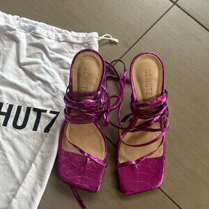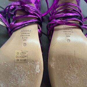 SCHUTZ Lily Metallic Leather Sandal (US 8.5)