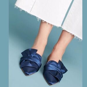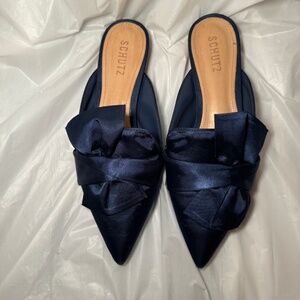 SCHUTZ Size 9.5 Blue Satin Mules with Knotted Bow - Elegant & Trendy