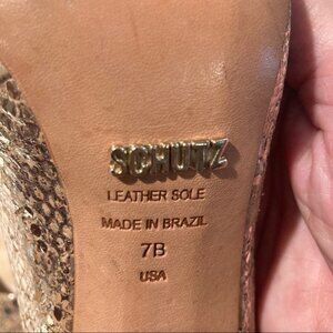 SCHUTZ Sz 7B Gold Specs Pointy Toe Pumps Heels. Some of the specs have flaked. Easy repair. Does not really show unless up close. Price reflects that. Superbly glamorous and gorgeous. Event. Party. Wedding guest. Sophisticated and fun. A statement piece.