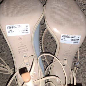 SCHUTZ-Vikki Crystal-Strappy/Convertible Heels-Light Nude Nubuck-Sz 9-NWOB
