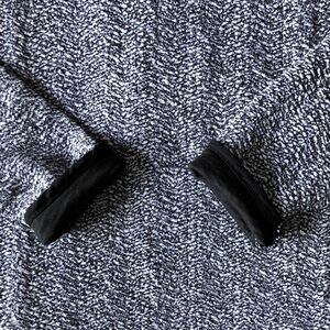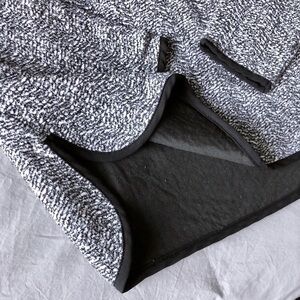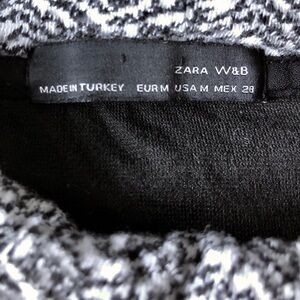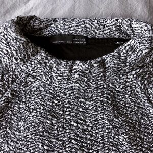 Black and white Mock neck Thick scuba/knit material Slight high low hem Small side slits Boxy/slightly cropped fit In excellent used condition!