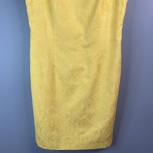 SD COLLECTION Floral Appliqué Yellow Dress Bateau Neck Brocade Tailored Fit 12