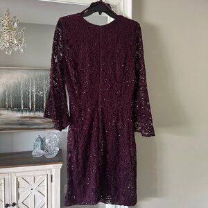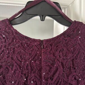 SD Collection Eggplant Lace Long sleeve Dress with Sequins (Size 16)