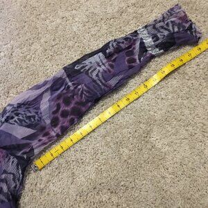 Very good preowned condition rare SE Stenau designer shirt, featuring abstract, eclectic patterns of animal skin, flowers, washes and shapes in purple, black, white and lavender. Sports unique buttons down the front. I think 3 different kinds. Has ruffled cuffs and a unique pintuck bib of various materials. Absolutely unique. I couldn't locate a fabric tag but to me it feels like it could be silk or a silk blend. This is a high end designer from Europe (Germany I believe), so I imagine they would use good quality fabrics like authentic silk.