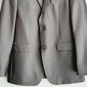 • Sophisticated and stylish single breasted two button closure blazer in solid grey.