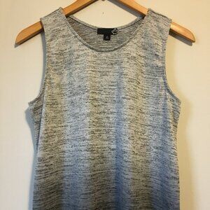 Very good preowned condition black, white and grey gradient marled knit, crewneck tank top by SEARS. Perfect for summer, spring and fall layering.