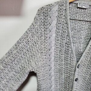 SEARS Vintage 80s Cable Knit Chunky Grandpa Cardigan Button Front Grey