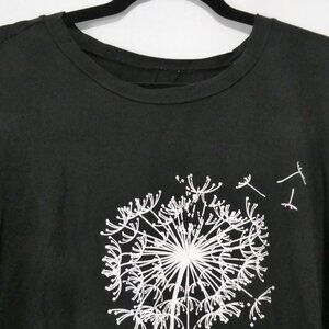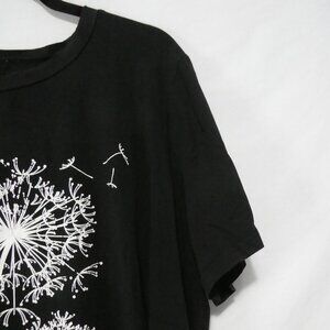 Embrace casual elegance with this chic black t-shirt featuring a striking white dandelion print
