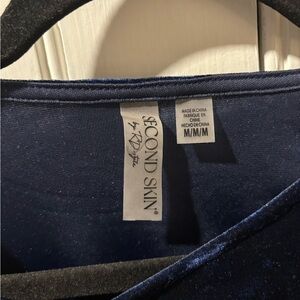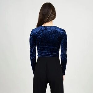 SECOND SKIN BY RD STYLE WOMEN'S ROXI LONG SLEEVE VELVET BODYSUIT-NAVY