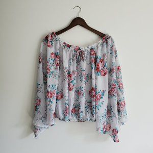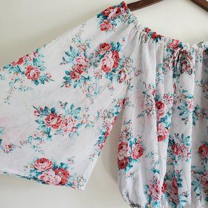 SEDUCTIONS | Flowy floral blouse with bell sleeves and cinched hem (Size M)