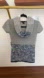 Grey sweater with blue and white yarn