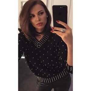 SEE BY CHLOE Black Wool Beads Embellished Jumper Sweater Sz USA 6