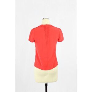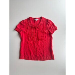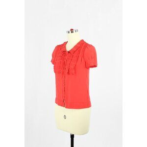 SEE BY CHLOE Coral Red Silk Georgette Ruffle Short Puff Sleeve Blouse, Size 2
