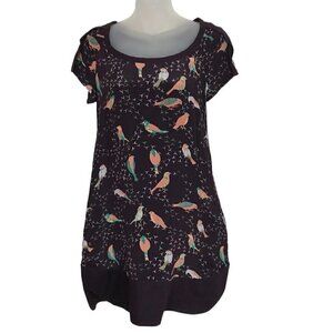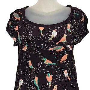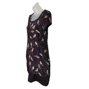 See By Chloe 100% Silk Dress Deep Burgundy Colour With Gorgeous Bird Pattern Has Two Front Pockets Beautiful Piece Size 2