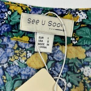 SEE U Soon Blue Yellow Floral Cottagecore Long Sleeve Dress