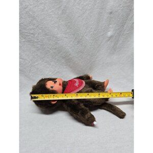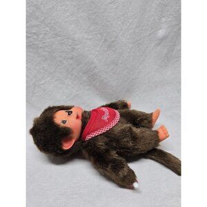 SEKIGUCHI 7.5" MONCHHICHI BOY WEARING RED BIB HOLDING PACIFIER DOLL