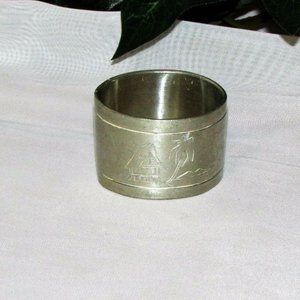 SELANGOR Pewter Single Vintage Napkin Ring Etched Palm Tree Tropical Beach