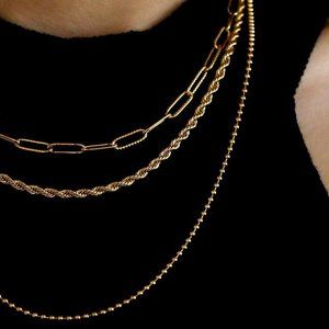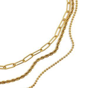 Turn heads in our mixed chain layer necklace. Simple, yet sophisticated, this pre-layered 3 strand necklace will up your style quotient.