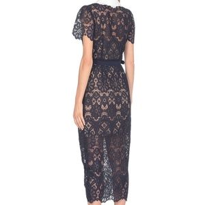 SELF PORTRAIT Collared Floral Guipure Belted Midi Dress