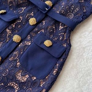 SELF PORTRAIT Collared Floral Guipure Belted Midi Dress