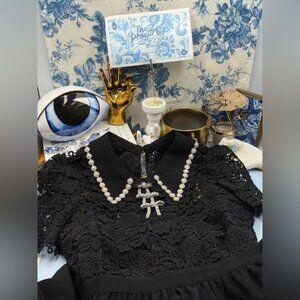 🆕 SELF PORTRAIT 🧿 NWOT Black Guipure Diamante Lace Mini Dress - Sz UK 10 US 6