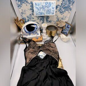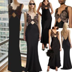 🆕 SELF PORTRAIT 🧿 NWOT Black Lace Satin Maxi Dress, Sz UK 4 / US 0