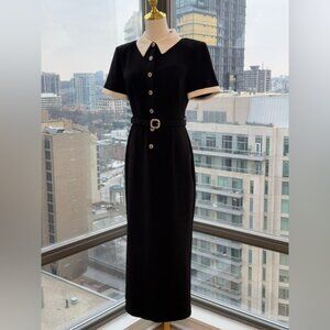 🆕 SELF-PORTRAIT 🧿 Black Belted White Crepe Contrast Midi Dress, Sz UK 10 US 6