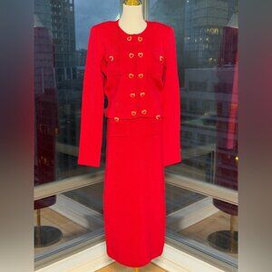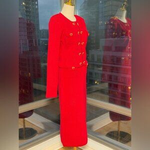 🆕 SELF-PORTRAIT 🧿 NWOT Red Knit Heart Buttoned Cardigan + Midi Skirt Set Sz L