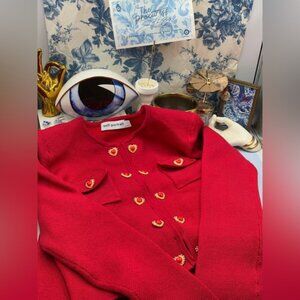 We love a co-ord, and this set — with its bold red knit, heart buttons and chic sculpted fit — makes for an epic date night look.