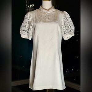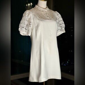 🆕 SELF-PORTRAIT 🧿NWOT White Guipure Lace Bubble Sleeve Mini Dress Sz UK10 US 6
