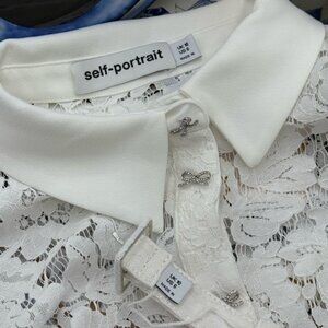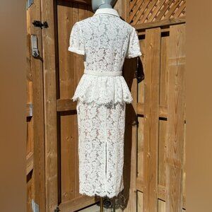 🆕 SELF-PORTRAIT 🧿 NWOT White Lace Peplum Belted Midi Dress, Sz UK 10 US 6