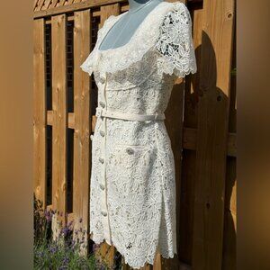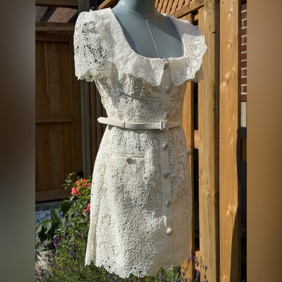 🆕 SELF-PORTRAIT 🧿 NWT Cream Guipure Lace Belted Mini Dress, Sz UK 10 US 6