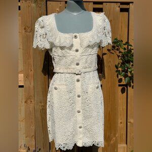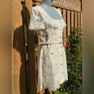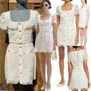 🆕 SELF-PORTRAIT 🧿 NWT Cream Guipure Lace Belted Mini Dress, Sz UK 12 US 8