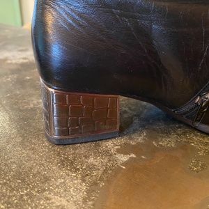SENDA beautiful soft leather black booties, with a very cool silver heal, square toe.
