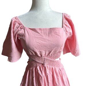SENLLEN Made With Love Pink Cotton Ruffled Skirt Set is the perfect blend of femininity and style. With its sultry off the shoulder cropped ruffled top smocked criss cross waistband (with lots of stretch) and tiered mini ruffled skirt, this set is perfect for a vacation getaway. The fabric is lightweight, airy and breathable, keeping you cool in the hot summer days. This dress set is also ideal for the boho festival styles.