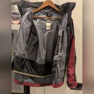 selling a black/burgundy serac ski shell