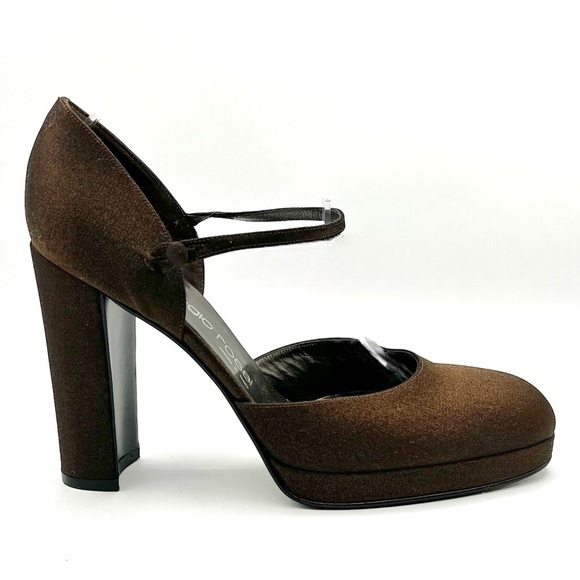 Sergio Rossi Brown Satin Mary Jane Pumps Made In Italy