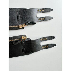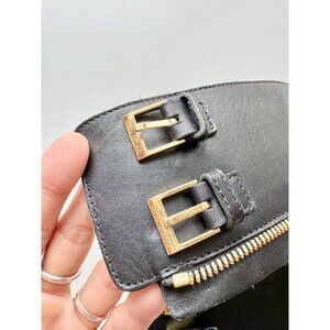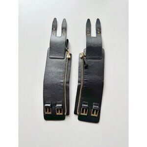 SERGIO ROSSI Black Leather Gold Tone Zipper Buckle Replacement Ankle Cuffs