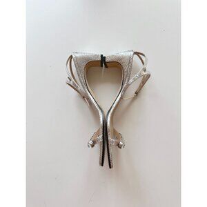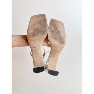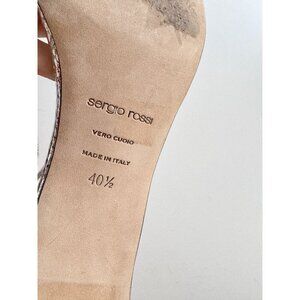 SERGIO ROSSI SR1 Silver Snake Leather Crystal Studded Block Sandals, Size 40.5