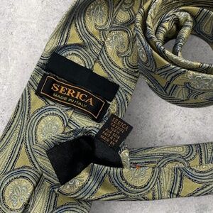 SERICA XL Gold/Blue/Silver Paisley Silk LUXURY Tie HANDMADE ITALY