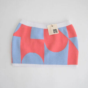 Revamp your wardrobe with the SER.O.YA Gretchen Skirt, a chic and stylish addition to your collection. This light blue and coral ribbed knit mini skirt from Revolve is designed to turn heads with its playful yet sophisticated appeal.