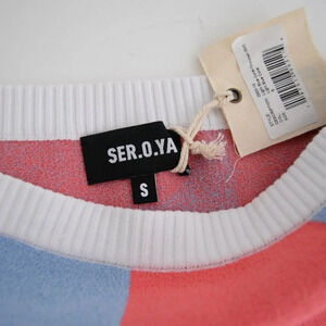 SER.O.YA Gretchen Skirt Light Blue & Coral Ribbed Knit Mini Skirt S Revolve NWT