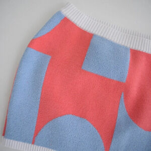 Crafted with meticulous attention to detail, this skirt features a flattering ribbed knit fabric that hugs your curves in all the right places. The light blue and coral color combination adds a fresh and vibrant touch, perfect for adding a pop of color to any outfit.