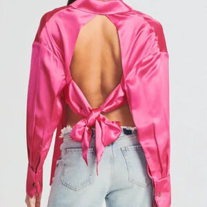 SER.O.YA Mel Top Hot Pink Button Up Front Open Back Blouse S NWT