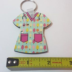 (B) 2 x Handmade (Sublimation) Scrub Top Key Chains - heart and ice cream print designs