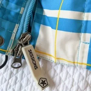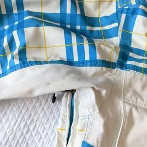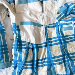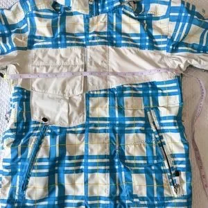 Men's Sessions ridge series snowboarding coat. Waterproof 10,000mm, breathable 10,000mm, and seam garment sealed. Many features on the jacket, like a built in whistle on the zipper, Recco technology and a surround sound collar Has inner thumb hole cuffs, lots of pockets and zippers, that honestly, I'm sure what all of them are for. You can visit www.sessions.com, to get more info on their gear. This was my son's and is in used condition. There is some staining along the cuffs, waistband, front pockets/seams, and something under the arm area. It has been washed, but I didn't stain treat it. There is also some piling on the inner cuffs. Really good coat for the serious snowboarder or skier!